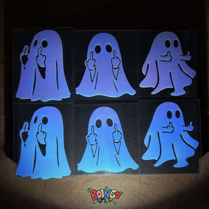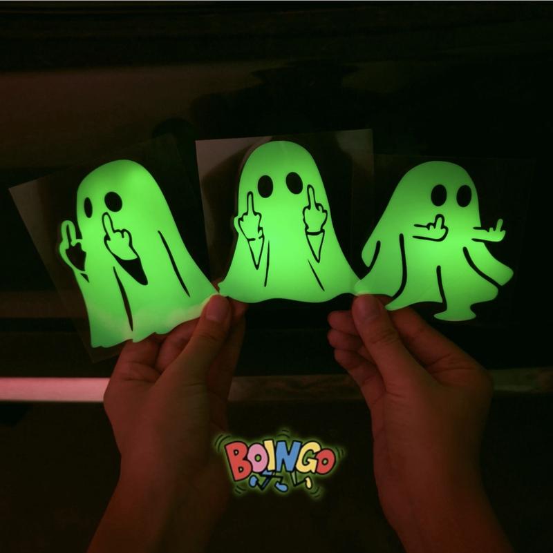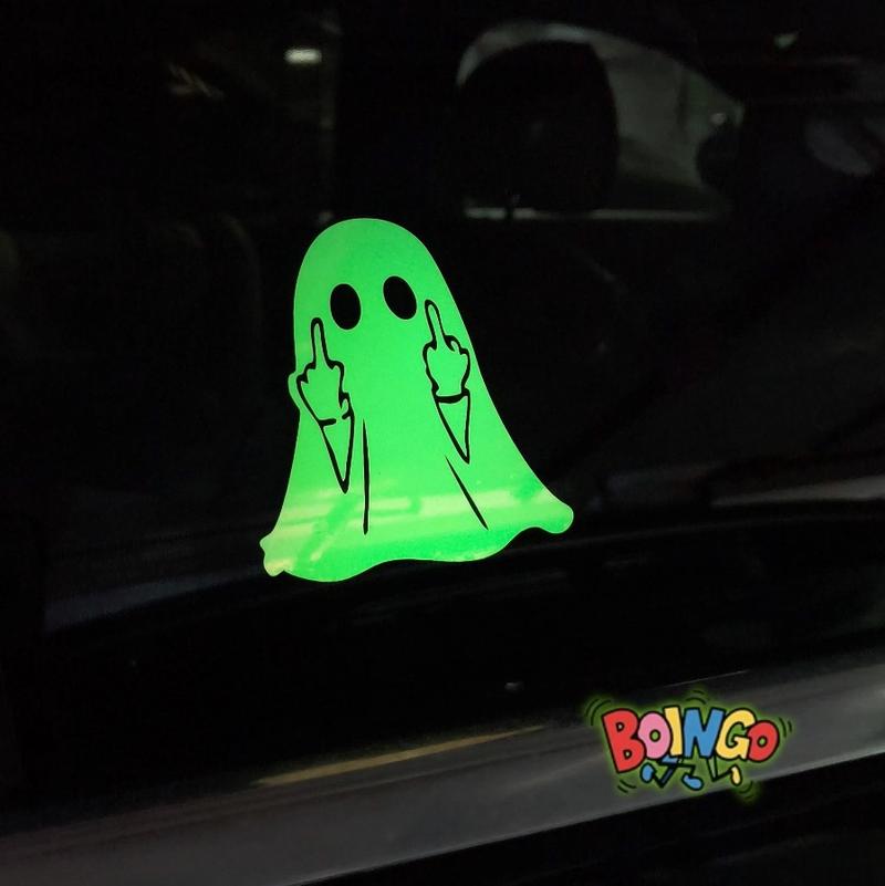 Command attention with these glow-in-theroid ghost stickers! Perfect for Halloween or everyday fun, they stick to cars, motorcycles, and windows. Their bright glow and reflective middle finger ensure you're seen, making a bold statement anytime.