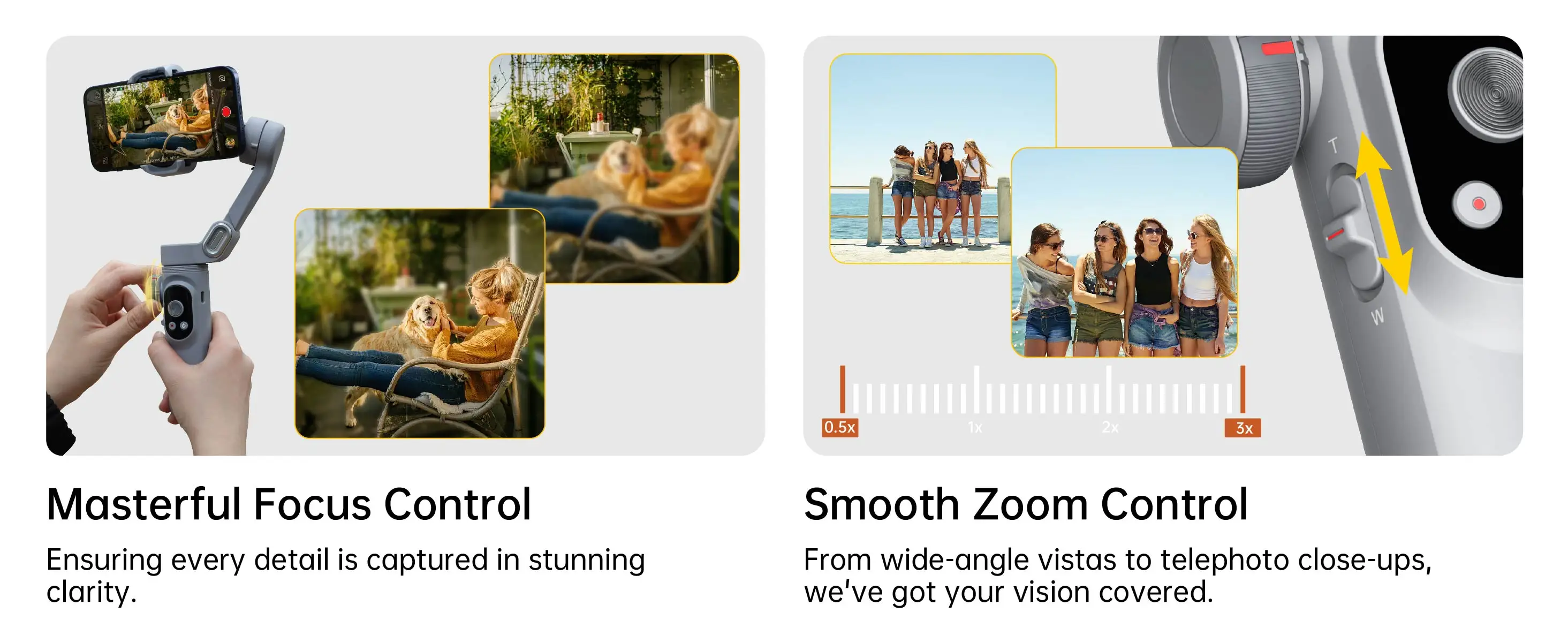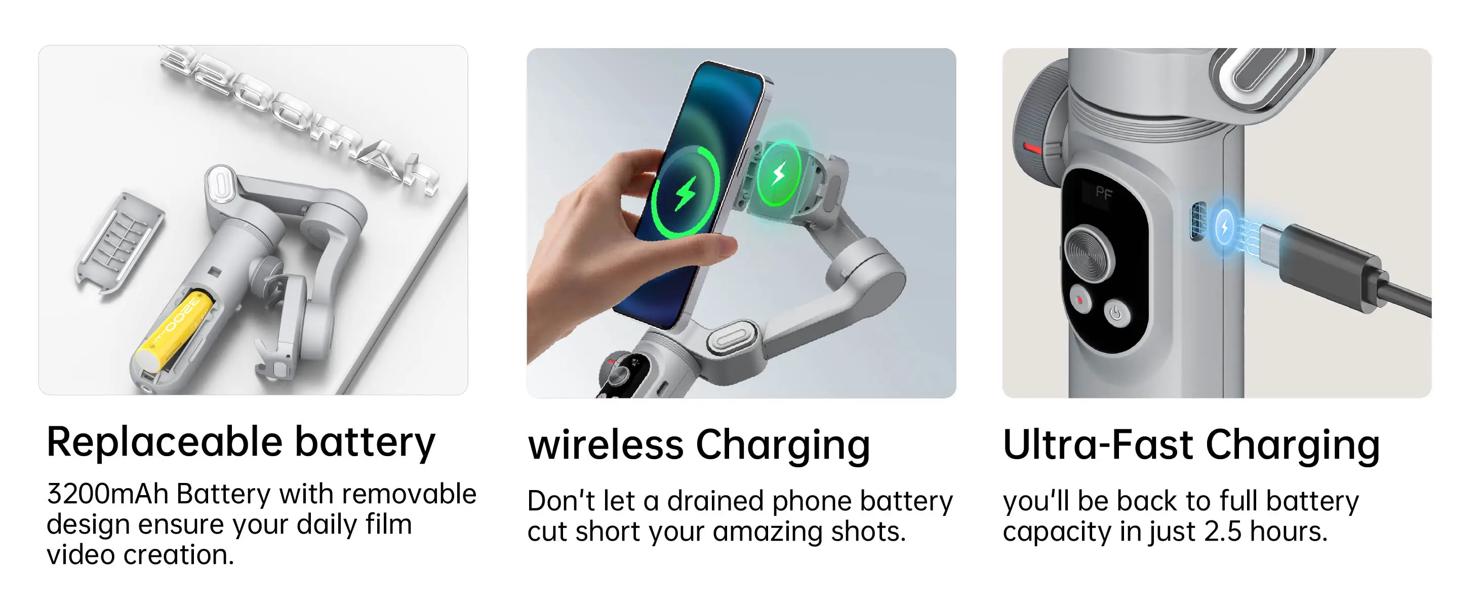 MAKE YOUR OWN HITCHCOCK MOVIES LIKE A PRO: Using our innovative focus switch and zoom slide, this mobile gimbal stabilizer allows you to make your own Hitchcock movies without having to learn complex filmmaking skills. Synchronized, smooth focus speed adjustments. Plus, the 3 brushless motors of the Smart X Pro add more power than other brands of gimbals. The high-capacity 3200mAh battery allows for extended runtime of up to 12 hours.