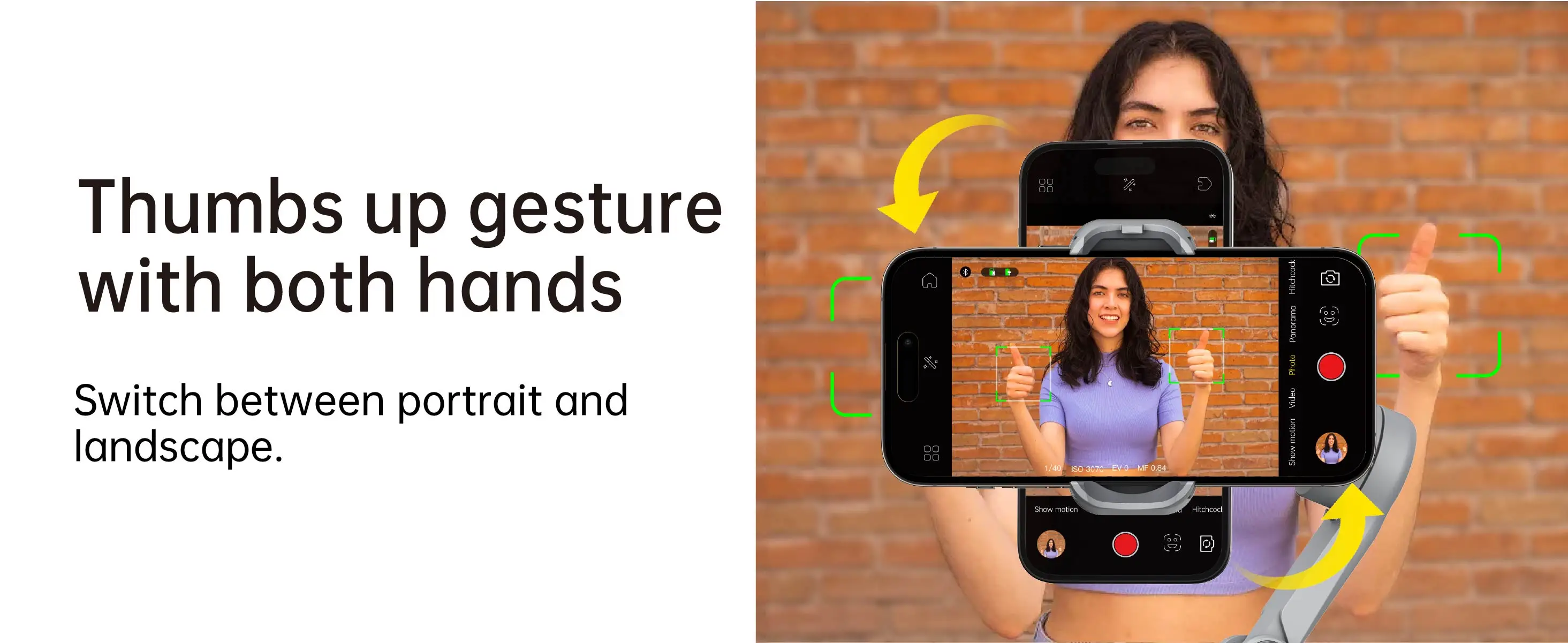 SMART 7.0 stabilized performance. With enhanced powerful brushless motors and SMART 7.0 anti-shake algorithms, video output is smooth and stable, making you a professional videographer. Suitable for video blogging, live streaming, selfies, hiking, sports and other scenarios. One-touch video button easily switches from horizontal to vertical mode for quick shooting of movie making and YouTube videos.