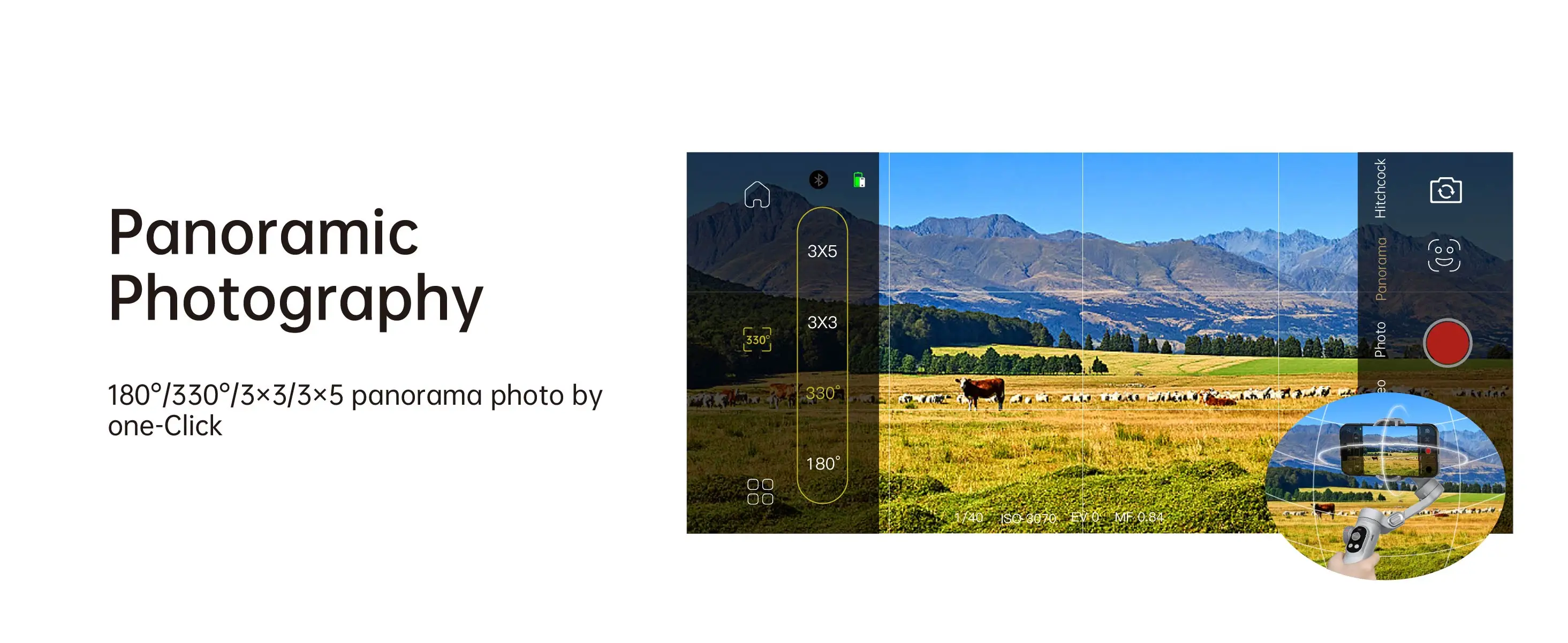 owerful and intuitive AOCHUAN app. Master Smart 4.0 AI gesture control, face tracking, including panorama, wide angle, pro mode, live streaming, time-lapse and motion capture. Multi-functional features such as Initial Mode, Push-Pull Zoom, Time Lapse, and Motion Passage make it easier than ever to record moments. Plus, you can change to the ultra-wide-angle iPhone 13 Pro Max to take wider, 3×5 super panoramic photos.